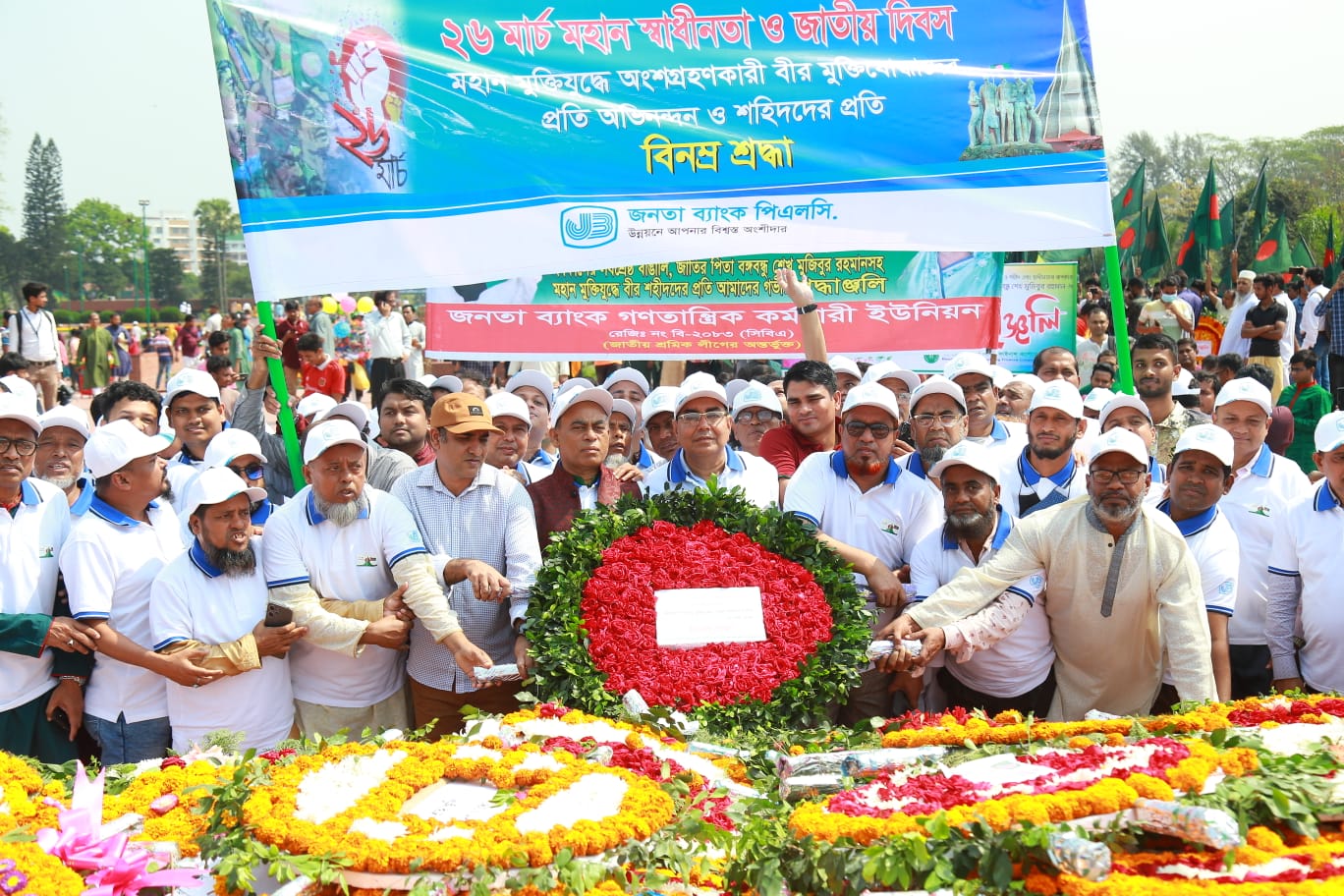 মহান স্বাধীনতা ও জাতীয় দিবস উপলক্ষে ২৬ মার্চ (মঙ্গলবার) সাভারে জাতীয় স্মৃতিসৌধে জনতা ব্যাংক পিএলসি. এর পক্ষ থেকে পুস্পস্তবক অর্পণের মাধ্যমে গভীর শ্রদ্ধা জ্ঞাপন করা হয়। এসময় জনতা ব্যাংক পিএলসির বিভাগীয় কার্যালয় ঢাকা-উত্তরের মহাব্যবস্থাপক মো. একরামুল হক আকনসহ ব্যাংকের সর্বস্তরের নির্বাহী, কর্মকর্তা, কর্মচারী, অফিসার সংগঠন ও সিবিএ নেতৃবৃন্দ উপস্থিত ছিলেন।