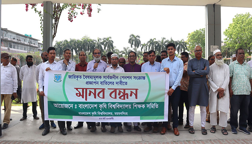 অর্থ মন্ত্রণালয় সম্প্রতি সব স্বশাসিত, স্বায়ত্তশাসিত, রাষ্ট্রায়ত্ত, সংবিধিবদ্ধ বা সমজাতীয় সংস্থায় আগামী জুলাই থেকে যোগ দেয়া চাকরিজীবীদের সর্বজনীন পেনশনে যুক্ত হওয়া বাধ্যতামূলক করে একটি প্রজ্ঞাপন জারি করেছে। তারা বিদ্যমান পেনশনের বদলে সার্বজনীন পেনশন কর্মসূচি ‘প্রত্যয়’ স্কিমে অন্তর্ভুক্ত হবেন। তবে সরকারের জারিকৃত এই সিদ্ধান্তকে বৈষম্যমূলক উল্লেখ করে জারিকৃত ওই প্রজ্ঞাপন বাতিলের দাবিতে মানববন্ধন করেছে বাংলাদেশ কৃষি বিশ্ববিদ্যালয় (বাকৃবি) শিক্ষক সমিতি।
