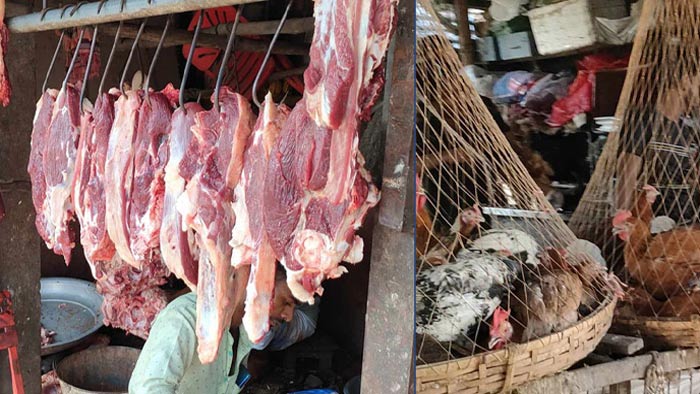 পবিত্র ঈদুল ফিতরকে ঘিরে রাজধানীর বাজারগুলোয় আরও বেড়েছে মুরগি ও মাংসের দাম। বর্তমানে প্রতি কেজি গরুর মাংস ৭৮০- ৮০০ টাকা, খাসির মাংস ১ হাজার ২০০ টাকা এবং ছাগলের মাংস এক হাজার ১০০ টাকায় বিক্রি হচ্ছে। বুধবার (১০ এপ্রিল) রাজধানীর কারওয়ান বাজার সিপাহীবাগ বাজার ও এর আশপাশের বাজার ঘুরে এই চিত্র দেখা যায়।