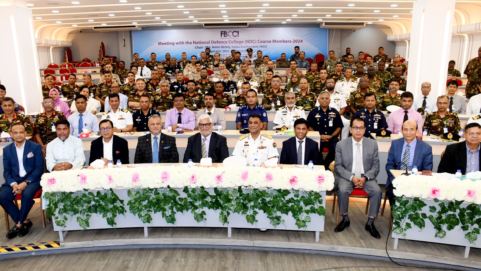ব্যবসায়ীদের শীর্ষ সংগঠন দি ফেডারেশন অব বাংলাদেশ চেম্বার্স অব কমার্স এন্ড ইন্ডাস্ট্রি (এফবিসিসিআই) পরিদর্শন করেছে ন্যাশনাল ডিফেন্স কলেজ (এনডিসি) কোর্স ২০২৪ -এর একটি উচ্চ পর্যায়ের প্রতিনিধি দল। কোর্স কারিকুলামের অংশ হিসেবে এফবিসিসিআই পরিদর্শনে আসেন তারা।
