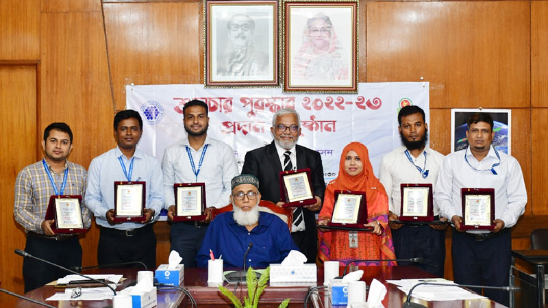 ইনভেস্টমেন্ট কর্পোরেশন অব বাংলাদেশ’র (আইসিবি) ‘শুদ্ধাচার পুরস্কার ২০২২-২৩’ এর জন্য মনোনীত কর্মচারীগণকে শুদ্ধাচার পুরস্কার প্রদান অনুষ্ঠান অনুষ্ঠিত হয়েছে। সোমবার (২৭ মে) আইসিবি’র প্রধান কার্যালয়ের বোর্ড রুমে পুরস্কার প্রদান অনুষ্ঠান অনুষ্ঠিত হয়। এতে সভাপতিত্ব করেন আইসিবি’র ব্যবস্থাপনা পরিচালক মোঃ আবুল হোসেন। তিনি শুদ্ধাচার পুরস্কারের জন্য মনোনীত কর্মচারীগণকে সার্টিফিকেট, ক্রেষ্ট ও চেক প্রদান করেন।