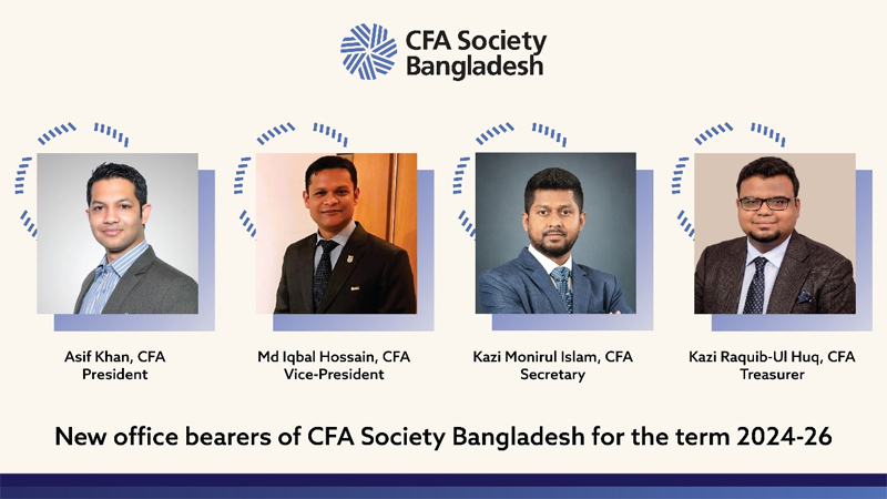 এছাড়াও সিএফও এবং সোনালী ব্যাংক পিএলসির হেড অব ট্রেজারি মো: ইকবাল হোসেন, সিএফএ ভাইস-প্রেসিডেন্ট নির্বাচিত হয়েছেন। শান্তা অ্যাসেট ম্যানেজমেন্টের সিইও কাজী মনিরুল ইসলাম, সিএফএ, সচিব এবং ব্র্যাক ব্যাংক পিএলসির হেড অব ক্যাপিটাল মার্কেট অ্যান্ড ওয়েলথ ম্যানেজমেন্ট কাজী রকিব-উল হক, সিএফএ কোষাধ্যক্ষের দায়িত্ব লাভ করেছেন।