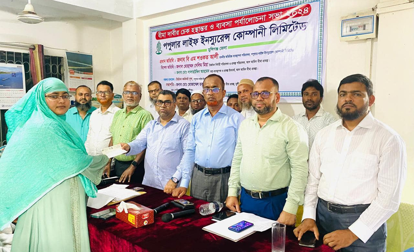 শুক্রবার (১১ অক্টোবর) মুন্সিগঞ্জ জেলায় বীমা দাবির চেক হস্তান্তর ও ব্যবসা পর্যালোচনা সভা অনুষ্ঠিত হয়, উক্ত অনুষ্ঠানে প্রধান অতিথি হিসেবে উপস্থিত ছিলেন পপুলার লাইফ ইনস্যুরেন্স কোম্পানী লিমিটেড এর মাননীয় অতিরিক্ত ব্যবস্থাপনা পরিচালক জনাব বিএম শওকত আলী। এসময় আরো উপস্থিত ছিলেন পপুলার লাইফ ইনস্যুরেন্স কোম্পানী লিমিটেড এর ঊর্ধ্বতন কর্মকর্তারা। সংবাদ বিজ্ঞপ্তি