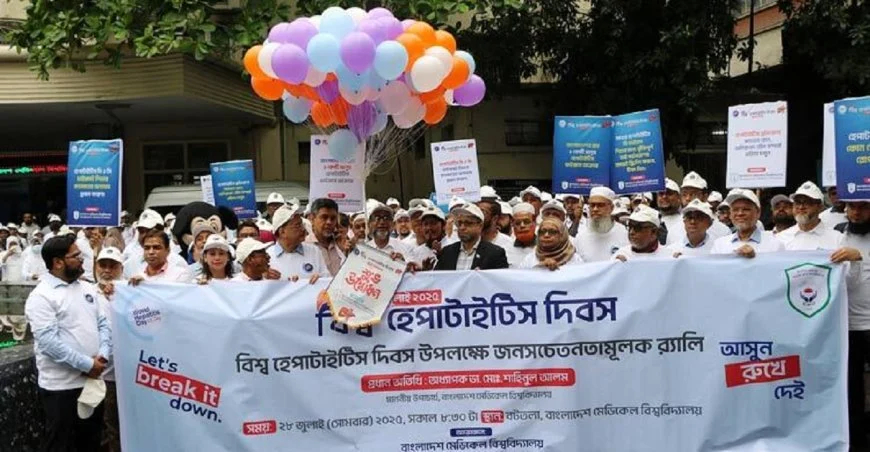 ২৮ জুলাই, সোমবার বাংলাদেশ মেডিক্যাল বিশ্ববিদ্যালয়ে (বিএমইউ) বিশ্ব হেপাটাইটিস দিবস- ২০২৫ উপলক্ষে আয়োজিত জনসচেতনতামূলক র্যালিতে এ তথ্য তুলে ধরা হয়। দিবসটি উপলক্ষে ‘হেপাটাইটিস: লেটস ব্রেক ইট ডাউন (Lets break it down) বা হেপাটাইটিস: বাধা ভেঙে ফেলি’ প্রতিপাদ্যে সচেতন হোন, বাঁচান জীবন স্লোগানে জনস্বাস্থ্য সম্পর্কিত গুরুত্বপূর্ণ এই দিবস উপলক্ষে জনসচেতনতামূলক র্যালি ও সায়েন্টিফিক সেমিনার অনুষ্ঠিত হয়। এ সব আয়োজনে প্রধান অতিথি ছিলেন বিএমইউর উপাচার্য অধ্যাপক ডা. মো. শাহিনুল আলম। বিশেষ অতিথি ছিলেন বিএমইউর উপ-উপাচার্য (প্রশাসন) অধ্যাপক ডা. মো. আবুল কালাম আজাদ, উপ-উপাচার্য (গবেষণা ও উন্নয়ন) অধ্যাপক ডা. মো. মুজিবুর রহমান হাওলাদার, কোষাধ্যক্ষ অধ্যাপক ডা. নাহরীন আখতার।