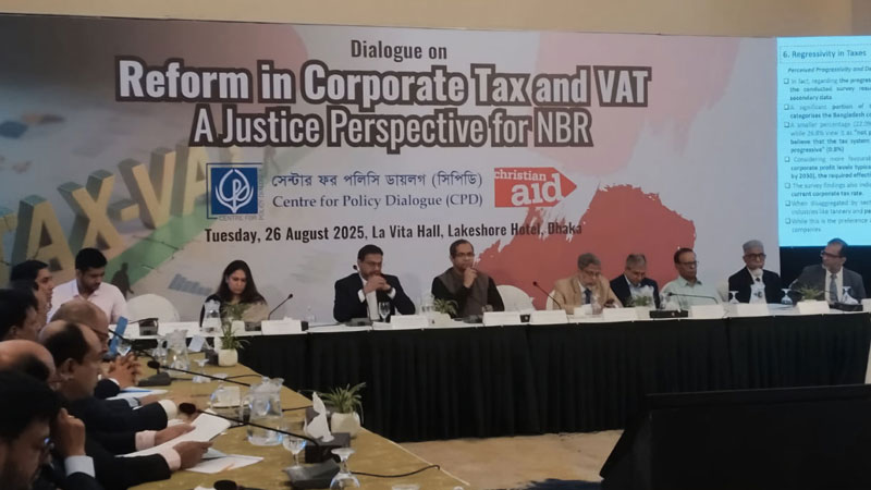 মঙ্গলবার (২৬ আগস্ট) রাজধানীর গুলশানের লেকশোর হোটেলে আয়োজিত করপোরেট কর ও ভ্যাট সংস্কার শীর্ষক এক সেমিনারে এ তথ্য প্রকাশ করা হয়। মূল প্রবন্ধ উপস্থাপন করেন সিনিয়র গবেষক মো. তামিম আহমেদ। অনুষ্ঠানে সভাপতিত্ব করেন সিপিডির গবেষণা পরিচালক খন্দকার গোলাম মোয়াজ্জেম এবং প্রধান অতিথি ছিলেন এনবিআর চেয়ারম্যান মো. আবদুর রহমান খান।